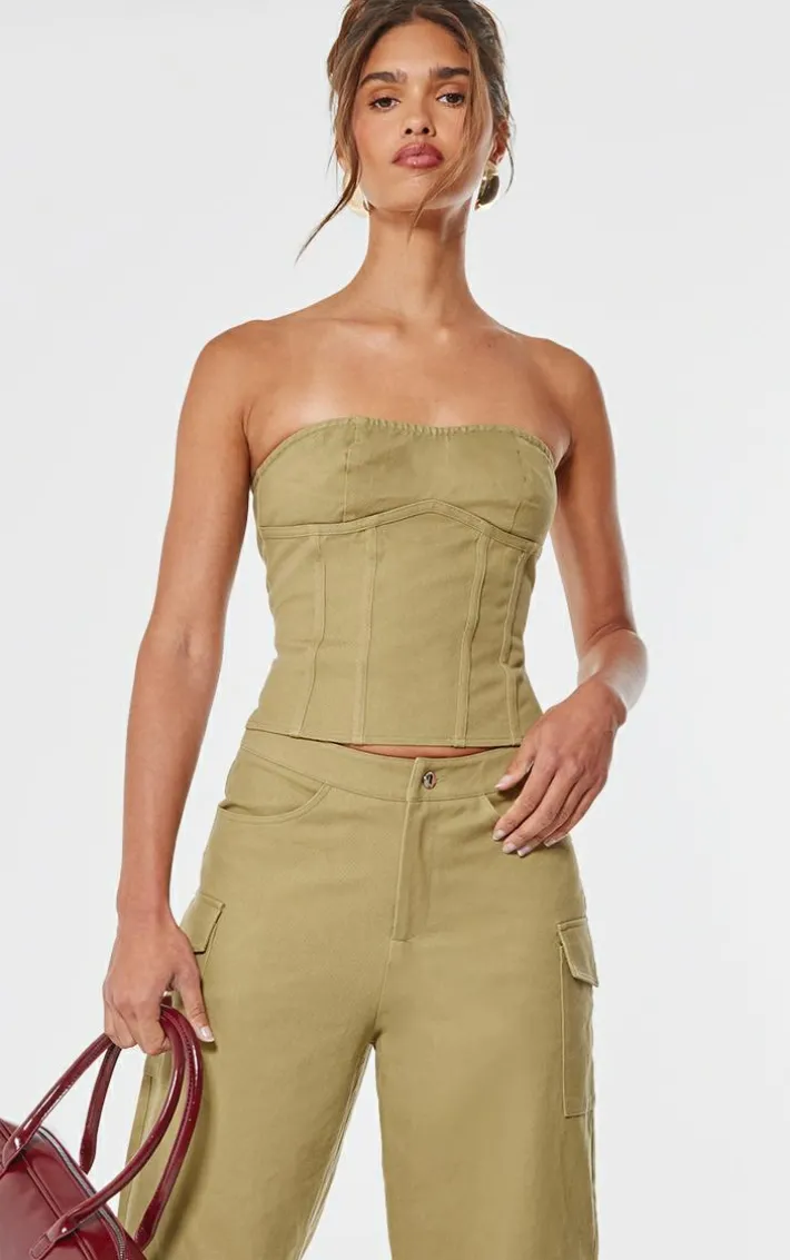 Look your most glam in this taupe premium twill seam detail bandeau top. Brought to you in a taupe premium twill material with a seam detail and bandeau neckline, this top is a must have. Style with the matching pants, leopard print heels and a red mini bag for a look we can’t get enough of. It’s a yes from us.