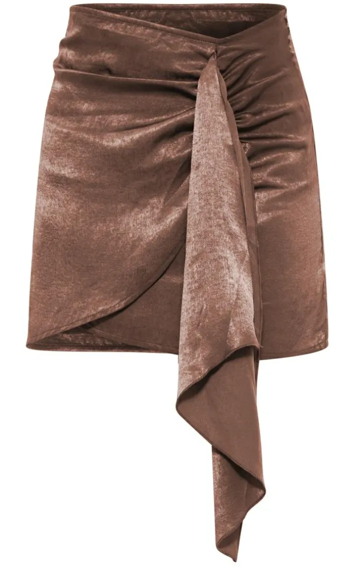 Your weekend outfit is finally sorted with this taupe satin wrap tie detail mini skirt. Its taupe satin material adds all the glam vibes whilst its wrap design and tie detail gives you an instant luxe touch. This mini skirt is the ultimate weekend styling piece and is sure to earn you all the likes. Pair with a tie-up shirt, clear heels, and gold hoops for a insta-worthy finish.