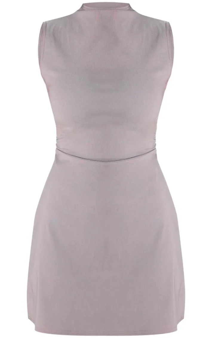 Take your look to the next level with this taupe stretch woven ruched detail bodycon dress. With a stretch woven material, ruched detail and capped sleeve design how can you resist? Pair with some chic flats and a shoulder bag to complete the outfit.