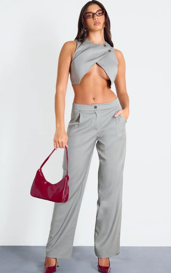 This taupe tailored asymmetric button vest is at the top of our new season wish list, you won’t blend in with this vest. Brought to you in a taupe material with a tailored asymmetric design bringing all the edge to any outfit of the day. With its button fastening, it’s a definite yes from us. Team with your go-to statement shoulder bag and the matching pants to finish off the look.