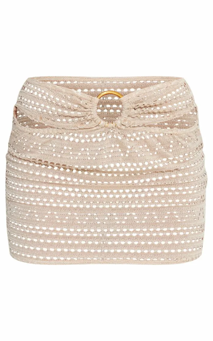 This taupe textured jersey ring detail cut out micro mini skirt is a must-have for your new season wardrobe. Brought to you in a taupe hue textured jersey material with a cut out design, ring detailing and a micro mini fit, how can you resist? Style this micro mini skirt with a crop top and sandals for a look we just can’t get enough of.
