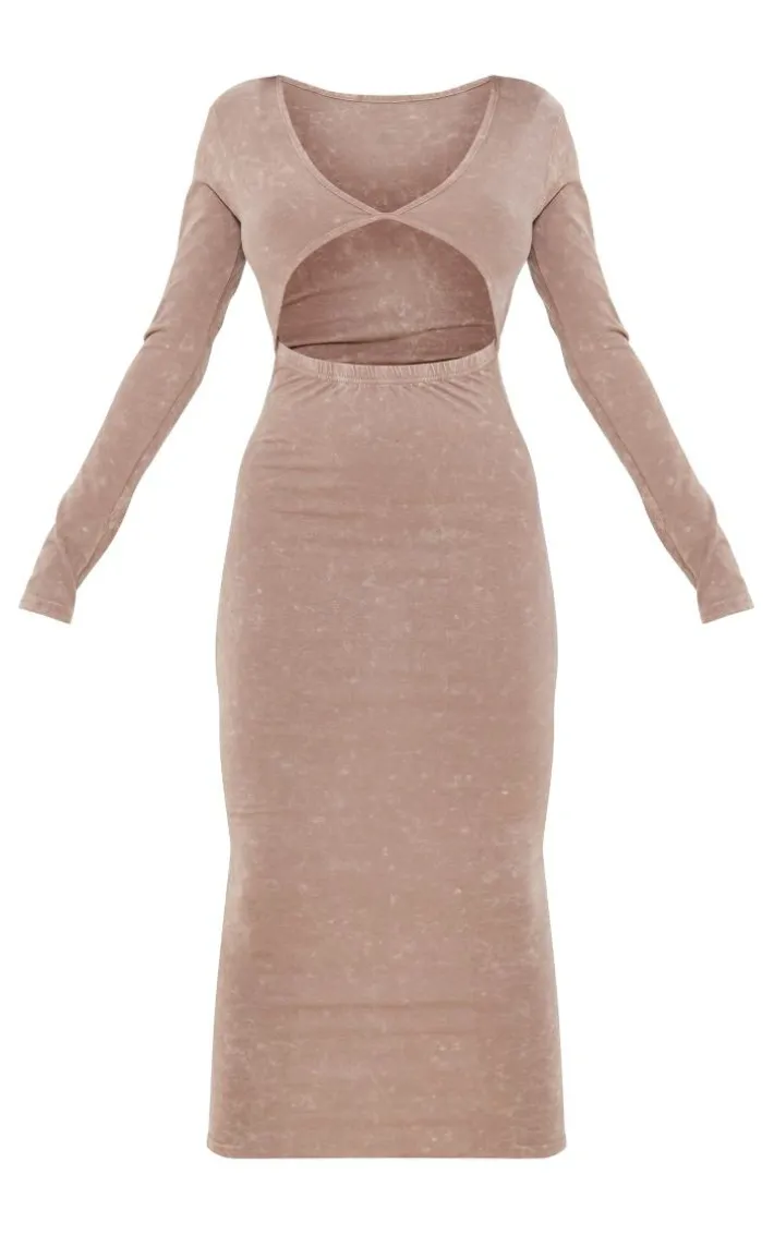 Make a statement this season in this taupe washed cotton cut out long sleeve midaxi dress. This unreal dress is made from a taupe washed hue for an effortlessly chic look we are loving. With a cotton material and a cut out detail, what more could you want ? Team with some clear heels and minimal accessories to complete this effortlessly glam look we are obsessing over.