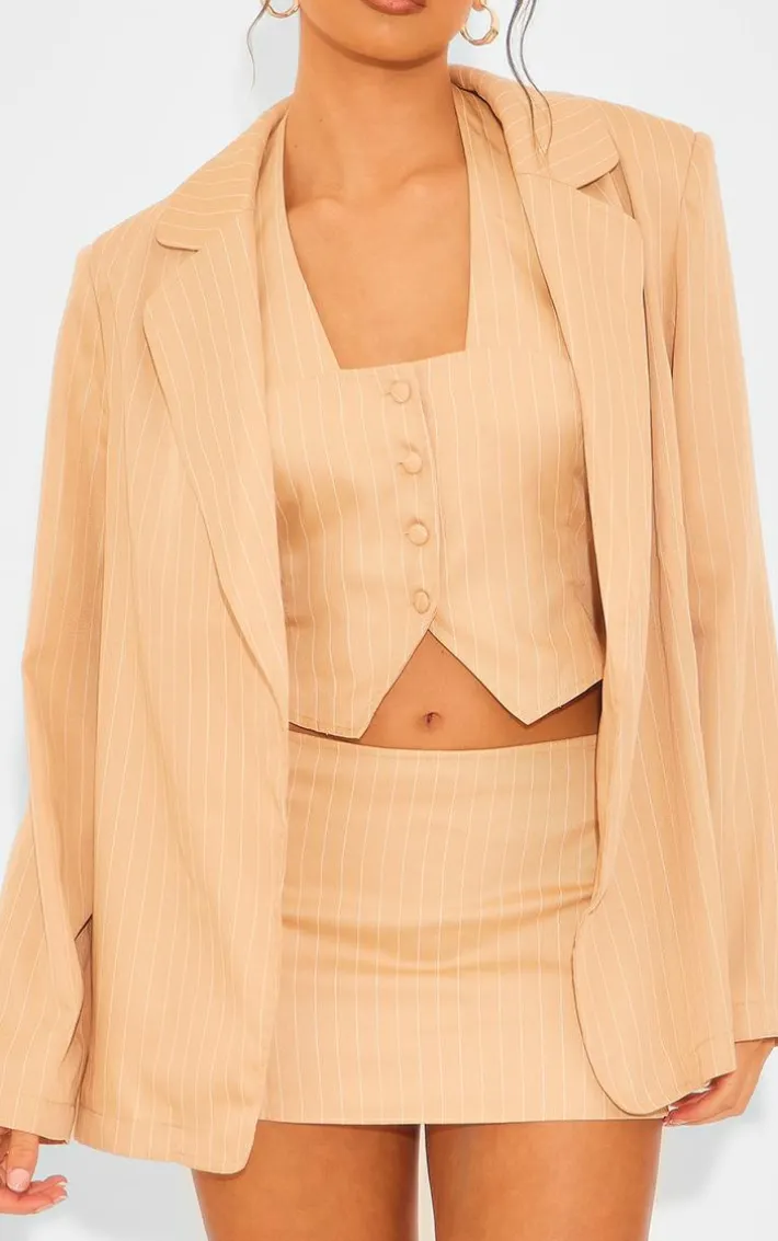 Go for all the effortlessly chic vibes this season with this taupe woven pinstripe oversized dad blazer, you’re sure to be earning all the compliments. This blazer features a taupe woven material with a pinstripe design and an oversized fit, we’re in love. Style this dad blazer with the matching skirt, heelsand some oversized sunglasses for an elevated weekend look.