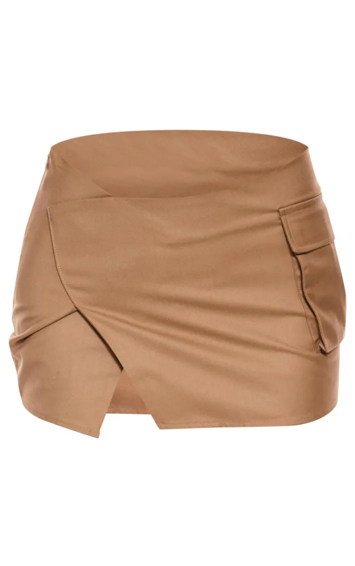 Take the stress out of weekend styling with this unreal taupe woven tailored wrap over pocket front mini skirt. Brought to you in a taupe woven material with a tailored fit and wrap over design, you really can’t go wrong with this unreal mini skirt. Its pocket front detail brings all the edge to your look. Style with a pair of chunky boots and a faux leather jacket for a look that will have eyes on you for all the right reasons.