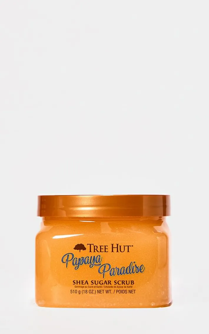 Boost your shower routine, scrub away the day and reveal glowing skin with Tree Hut Shea Sugar Body Scrub in juicy scent of Papaya Paradise. Made with Sugar, Shea Butter, Papaya, Pineapple Enzymes and an array of natural oils including Evening Primrose, Avocado, Macadamia, Sweet Almond, Safflower and Orange Oils.