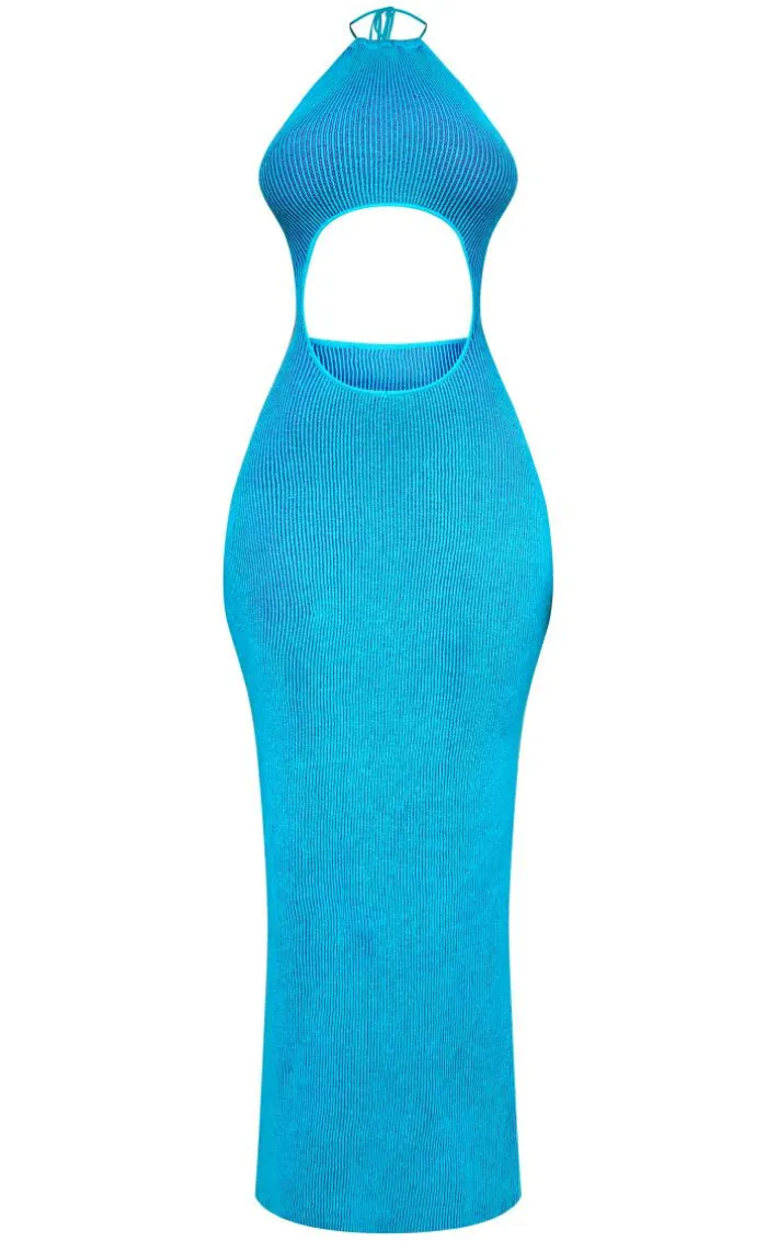 Give your wardrobe a seriously luxe update with this turquoise two-tone knit extreme cut-out maxi dress. Its turquoise two-tone knit material hugs your curves in all the right places and its extreme cut-out detail is sure to catch everyone’s attention. If you’re looking to make a statement this weekend, then this maxi dress is calling your name. Simply add matching hue heels and mini bag for a fresh look that will make jaws drop.