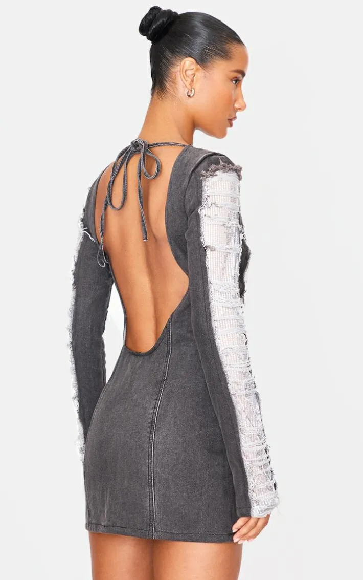 The new you starts here with these washed black extreme distressed sequin panel backless mini dress. Brought to you in a washed black hue material with an extreme distressed design, a sequin panel detail and backless feature, this mini dress is a must have. Team with buckle heels and simple accessories for a look that won’t go unnoticed.