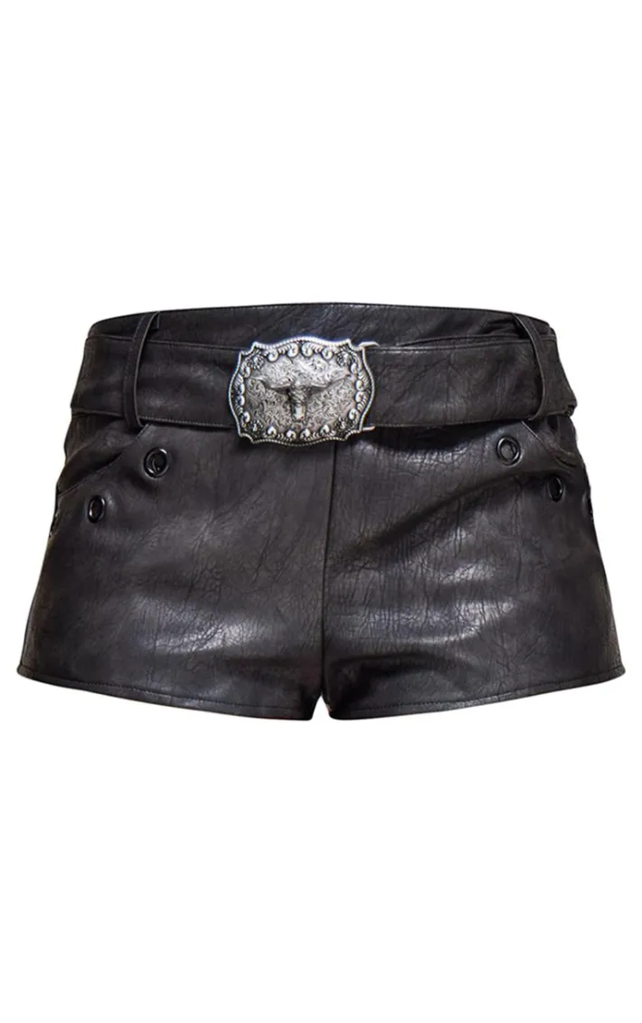 Bring all the drama to your weekend plans with these washed black faux leather buckle detail hot pants. Brought to you in a washed black faux leather material with buckle detailing and a flattering fit, we are obsessed. Style these faux leather hot pants with a crop top and gold accessories for a look that will really make a statement this weekend.