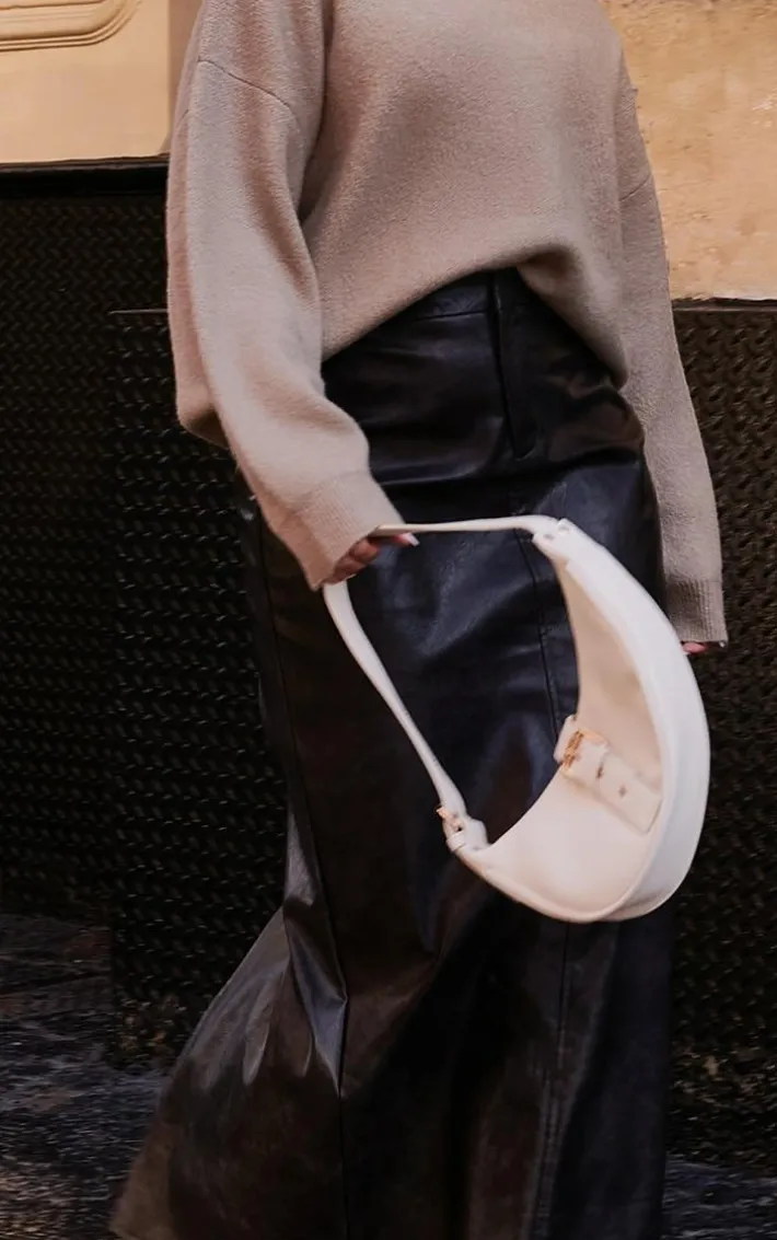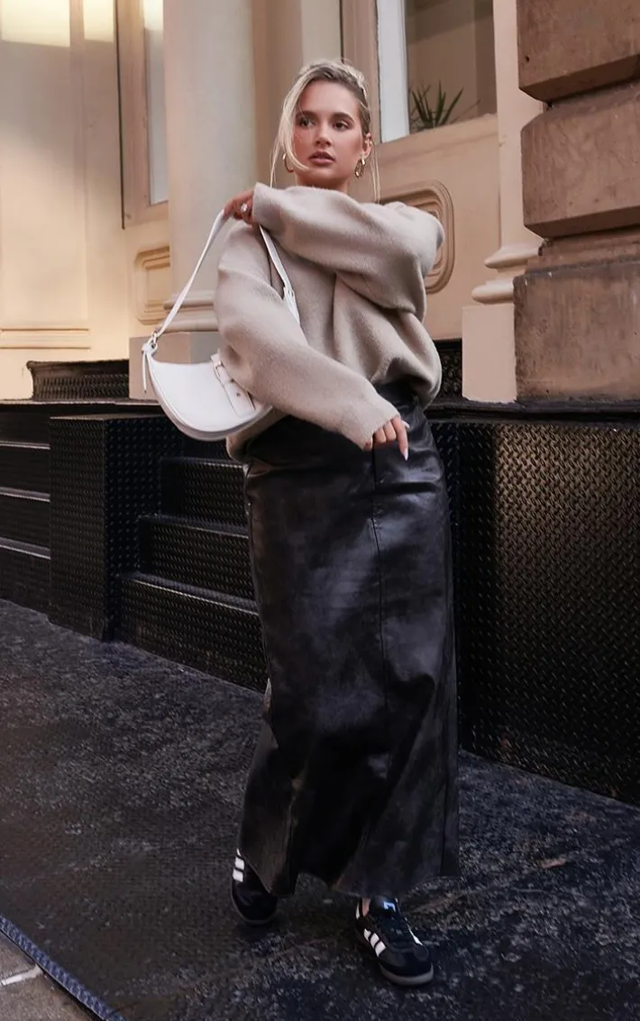 When your new season wardrobe calls for a little drama this washed black faux leather maxi skirt, you’re sure to be earning all the likes whatever your plans. Brought to you in a washed black faux leather material with a maxi length and a figure-worshipping fit, what’s not to love? Team this faux leather skirt with an oversized sweater, box fresh sneakers and a shoulder bag for a look everyone will want.
