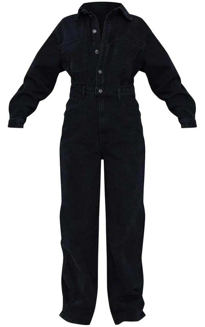 Give Your off-duty look an edge with this denim boilersuit. Featuring a black wash denim material with long sleeves, a button down front and an oversized fit. Team with fresh kicks and simple accessories to elevate the look we are loving.