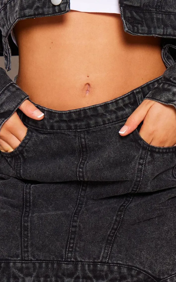 Add a little edge to your outfit of the day with this washed black seam detail asymmetric denim mini skirt, it’s a definite yes from us. This skirt features a washed black denim material with seam detailing and an asymmetric design, you won’t be able to resist. Pair this mini skirt with the matching jacket, sneakers and a shoulder bag for a chic, off-duty look.