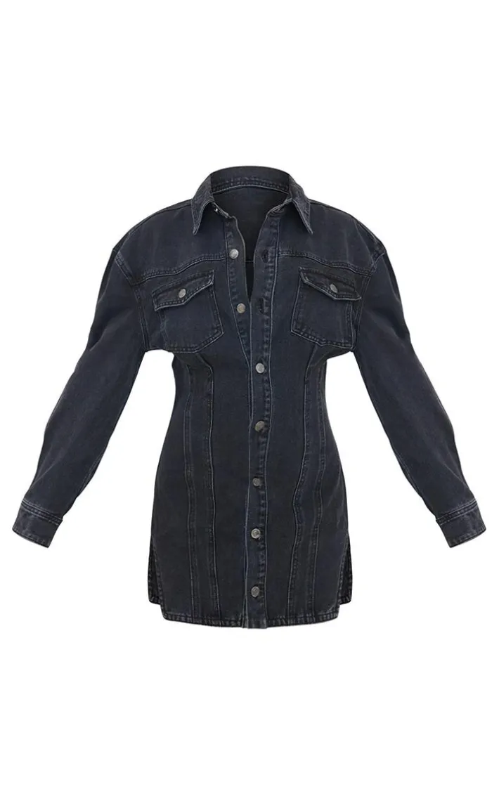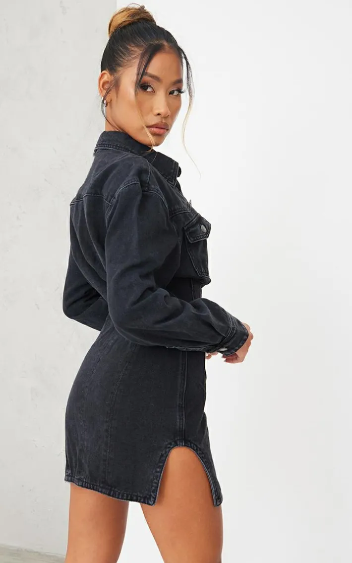 Give your everyday look an edge with this dress. Featuring a washed black denim material with seam detailing and long sleeves, what’s not to love? Style with boots, gold hoops and a mini bag for the perfect combo.