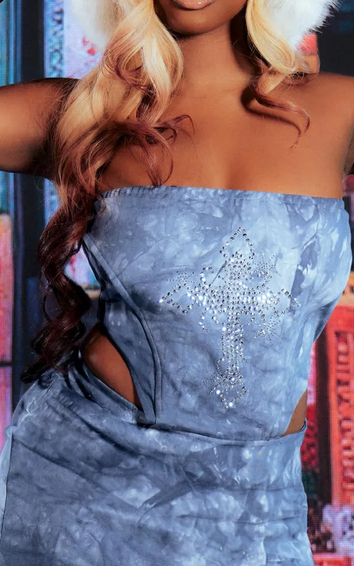 When the weekend calls, so does this washed blue diamante trim corset dress. Brought to you in a washed blue denim material with a trim detail, what’s not to love ? This corset dress is all you need to stand out from the rest. Team with some of your fave knee high boots and a statement hat to finish off this effortlessly chic look.