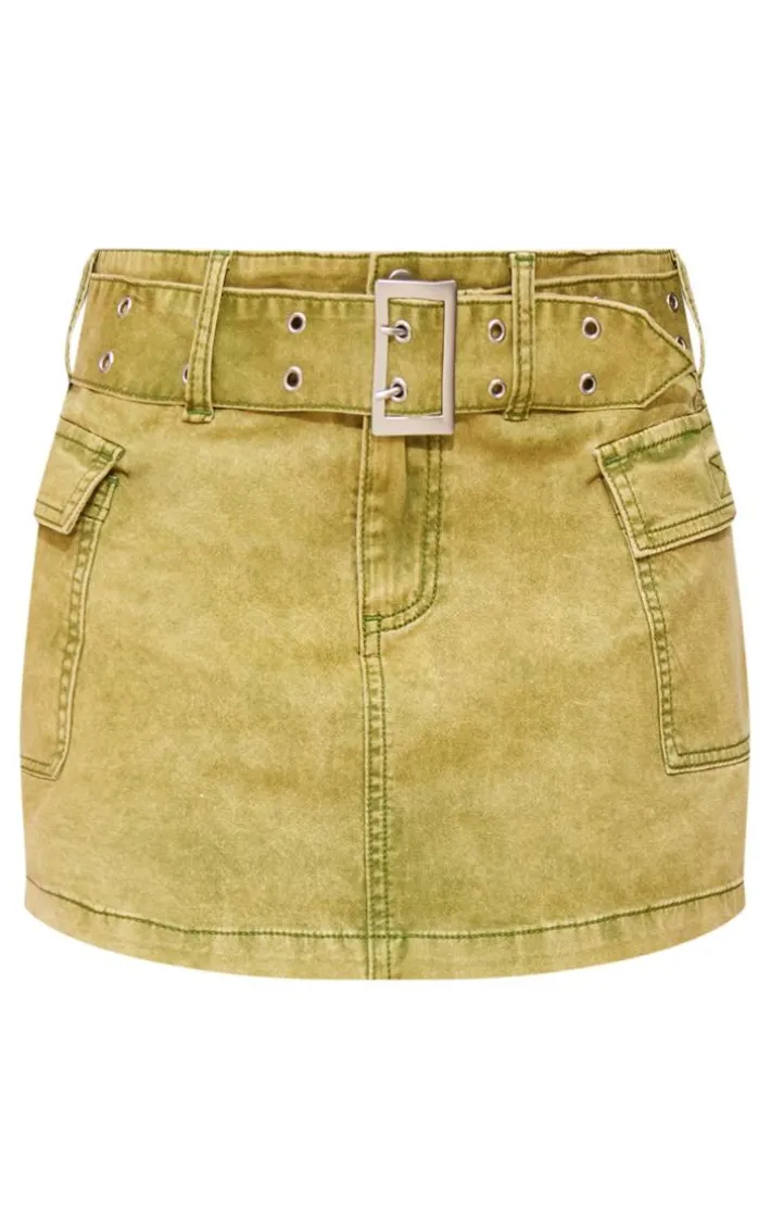Get your new season ‘fit on point with this washed green belted cargo pocket denim mini skirt. Brought to you in a washed green denim material with a belted design, pocket detailing and a cargo style that we just can’t get enough of right now, what more could you need? Team this mini skirt with a graphic tee, fresh kicks and your go-to accessories for a fierce off-duty look that won’t go unnoticed.