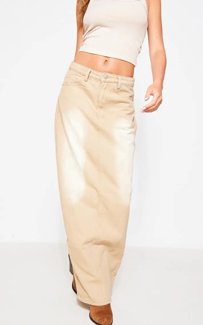 Say hello to your new season staple with this washed stone denim maxi skirt. This women’s maxi skirt is brought to you in a washed stone denim material with a maxi length, how could you say no? Whether it’s your everyday styling or you’re looking for your next weekend fit then this maxi skirt has you covered. Style effortlessly with a crop top, western boots and a cowboy hat for a look that will turn heads for all the right reasons.