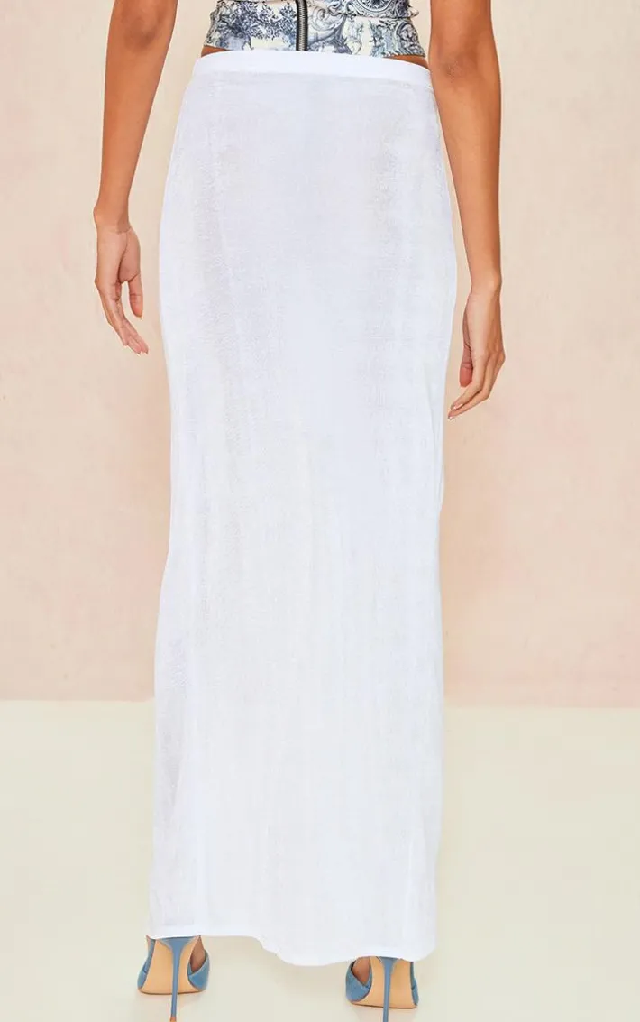 Add a touch of luxe into your new season wardrobe with this white acetate slinky drape front maxi skirt, it is the perfect staple piece to take your look effortlessly from date night to daytime plans. It features a white acetate slinky material with a drape front design and a maxi length, how could you say no to this women’s slinky skirt? Team this maxi skirt with a corset top, slip-on heels and your fave accessories for a flawless finish.