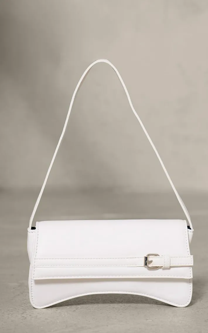 Add some seriously chic vibes to your new season wardrobe with this white baguette buckle shoulder bag, we’re in love. This bag features a white material with a buckle detail and a baguette style, you’ll be adding it straight to your basket. Pair this shoulder bag with your fave outfit of the day for a look everyone will want.