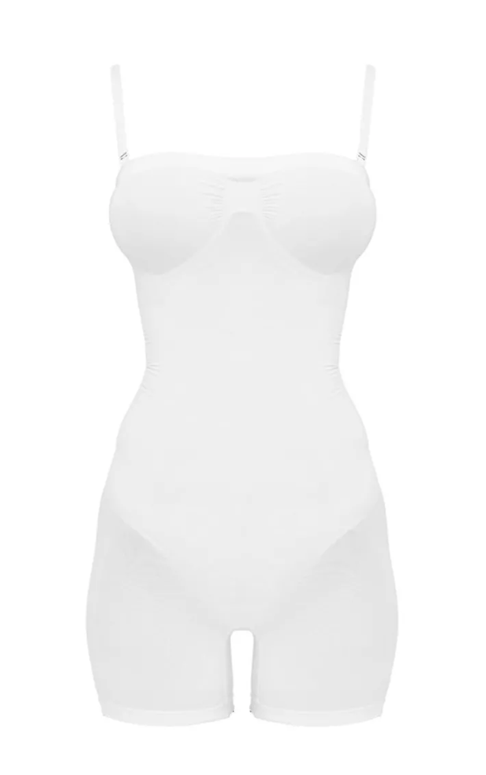 Your laid-back basics look just got a whole lot better in this white bandeau removable strap shapewear bodysuit. Brought to you in a white material with a bandeau neckline and removable straps, you are sure to feel comfy and confident in this shapewear bodysuit. Team with your fave accessories underneath your outfit of the day for a fool proof finish.