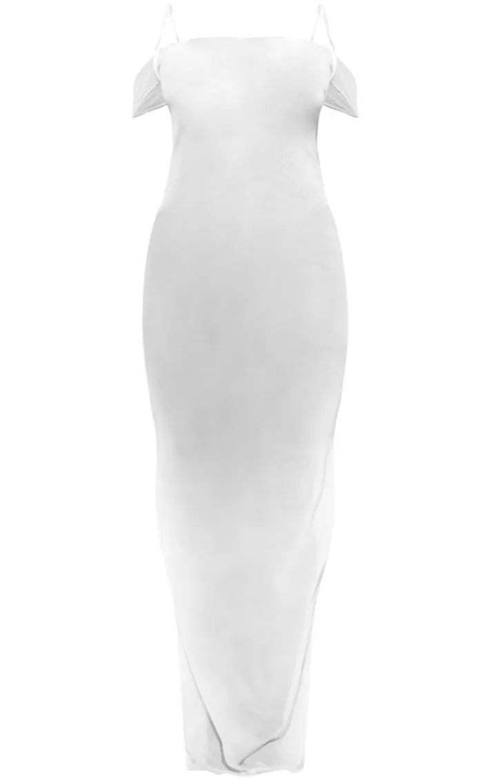 Turn heads for all the right reasons in this wite bardot cowl neck mesh maxi beach dress. Brought to you in a white mesh material with a bardot cowl neckline and maxi length, what’s not to love? Style this beach dress over a bikini set with sunnies and sandals for a dreamy finish.