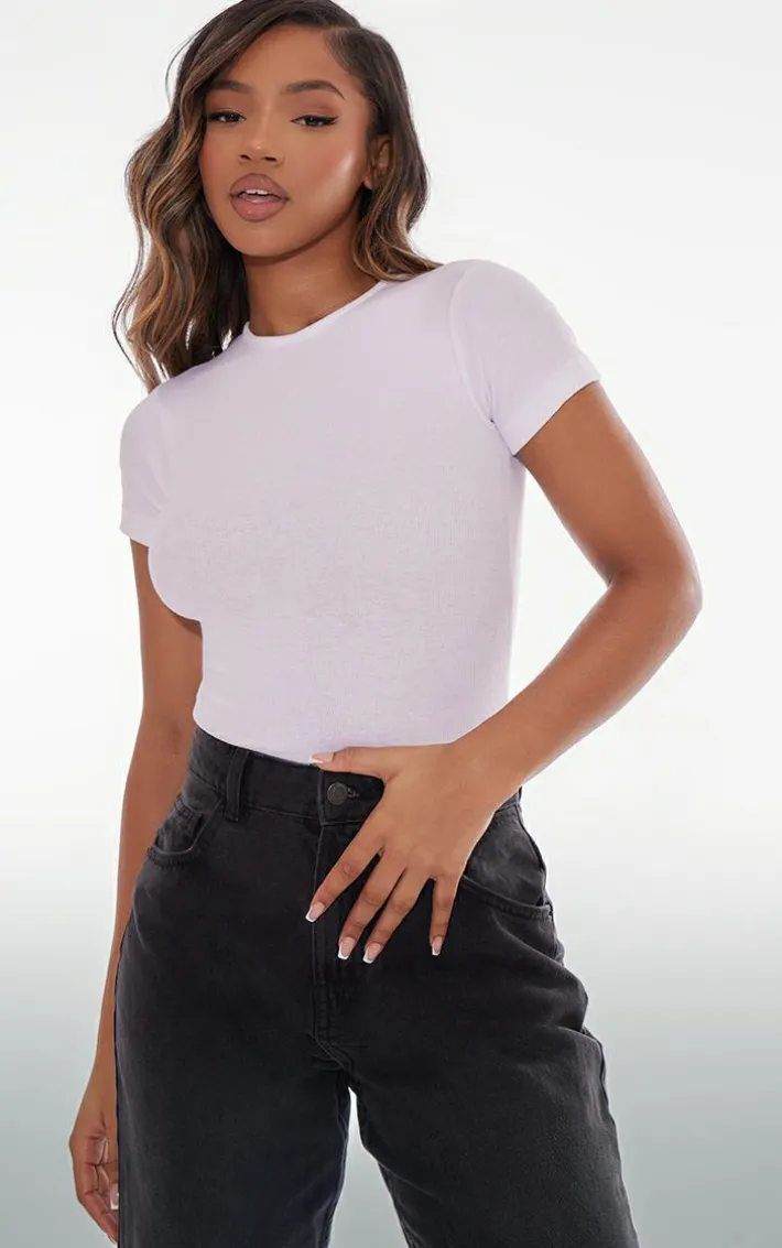 This white basic rib short sleeve bodysuit is all you need to elevate you everyday wardrobe. Brought to you in a whitebasic rib material for a comfy but chic fit, what’s not to love? With a short sleeve design, this bodysuit is all you need to take your look to new heights. Team with some wide leg pants and your fave gold hoops for a look like no other.