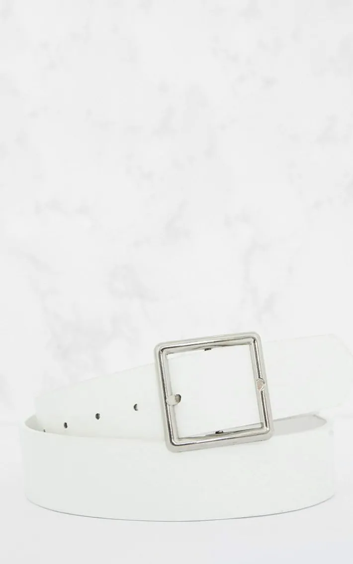 An essential for every girl’s accessory collection, this basic white square belt is perfect styled with any outfit.