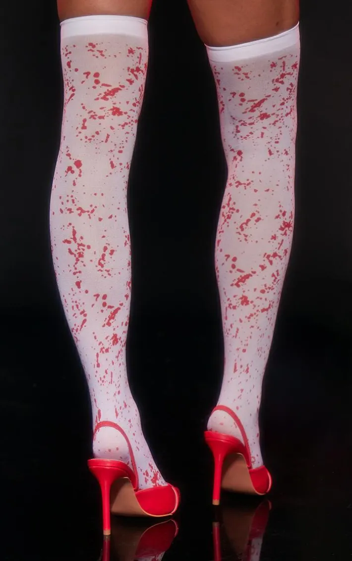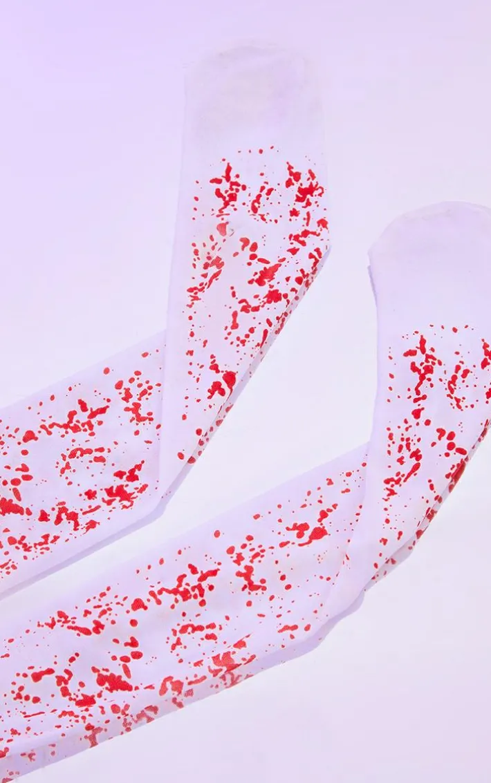 Take your Halloween outfit to a whole new level with these white blood stained stockings. Brought to you in a white material with a red blood stain design and a long fit, we just can’t get enough. Style these blood stained stockings with a red outfit for a Halloween look that will really make a statement.
