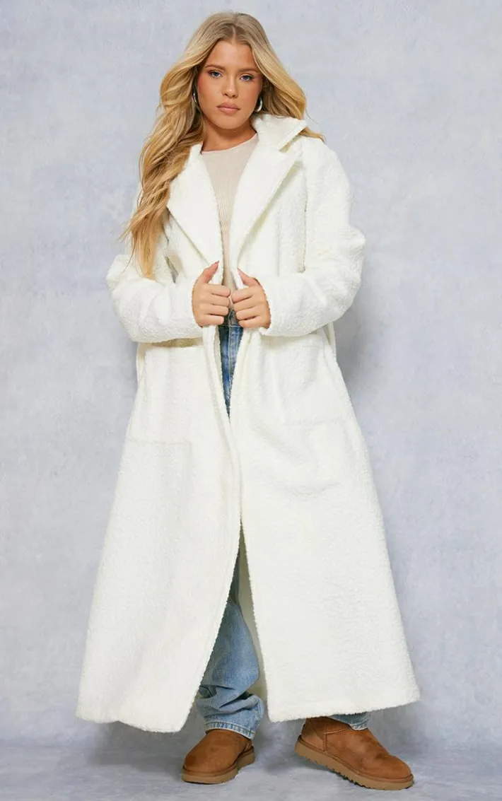 Layer up for the new season in style with this white boucle tie waist maxi coat. Brought to you in a white boucle material with a tie waist design and a maxi length, how can you not be obsessed? This maxi coat is sure to be your new go-to for those on-the-go days and beyond. Style over your outfit of the day for an effortlessly chic finishing touch to any look.