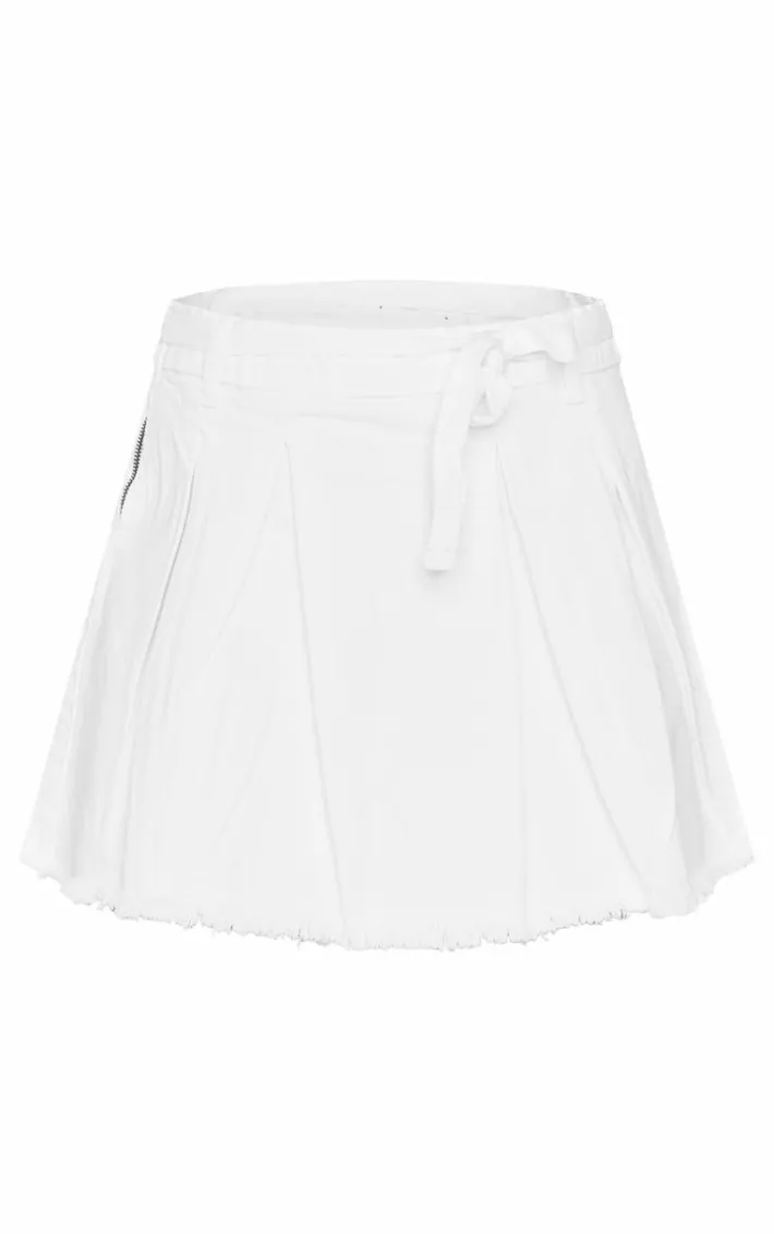 Don’t blend in with this white bow tie belt pleated denim mini skirt. Brought to you in a white denim material with a bow tie detail and a pleated design, perfect for those day time plans. This mini skirt pairs perfectly with a cropped vest and some chunky loafers, it’s a definite yes from us.