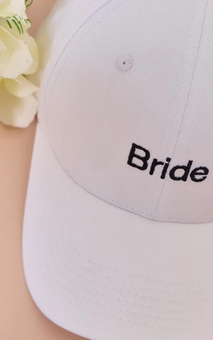 Calling all bride to be’s, you need this white ‘Bride’ cap for your bridal collection. Brought to you in a white hue material with a ‘Bride’ print design and adjustable back sizing, what more could you ask for? Just add this white cap to your all-white outfit for the perfect finishing touch to your look.