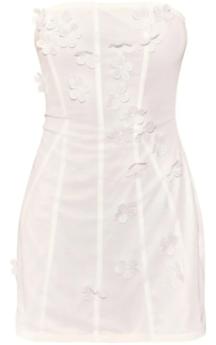 Be the best dressed for any occasion in this white chiffon bandeau floral applique shift dress. Brought to you in a white chiffon material with a floral applique design and bandeau neckline, this shift dress is dreamy. Style with white heels and gold accessories to have all eyes on you.