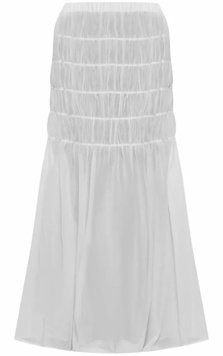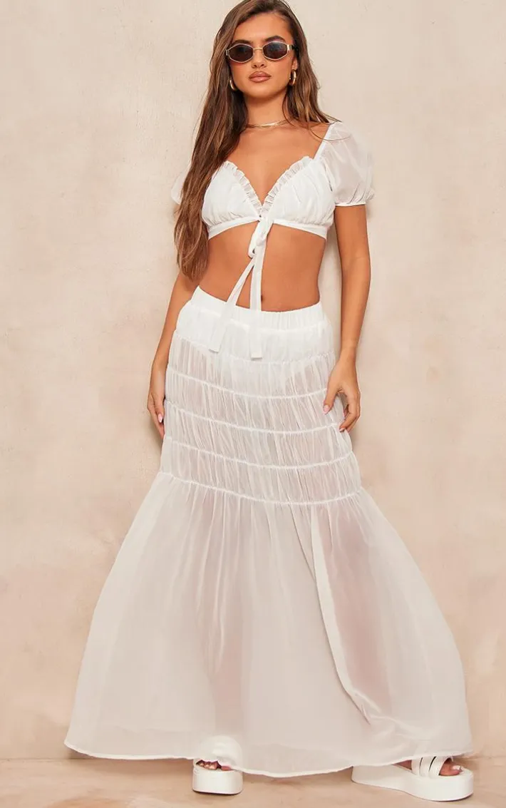 Get ready to nail major trends this season with this dreamy white chiffon shirred tier waist maxi skirt, you won’t be able to resist. It is made using a white chiffon material with a tiered design and a maxi length, we’re in love. Style with the matching top, platform sandals and gold hoop earrings for a look everyone will want.