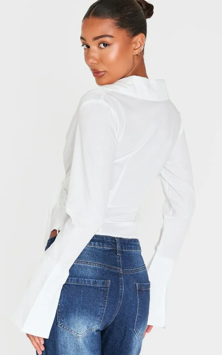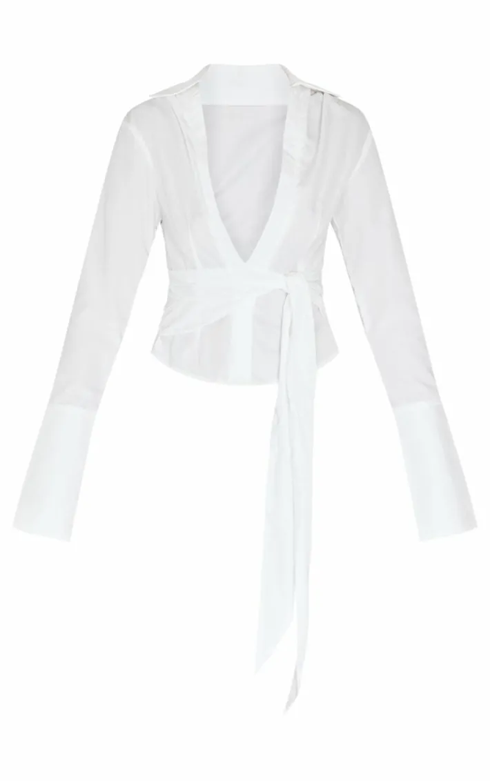 This white cinched tie waist shirt is sure to be a new season essential. Brought to you in a white hue material with a cinched waist design and tie detailing, how can you resist? Style this white shirt with jeans, court heels and a mini bag for a look that is perfect for dressing up or down to suit your plans.