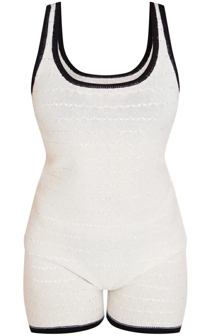 This white contrast binding crochet knit romper is here to banish any of your what to wear everyday dilemmas. This romper is brought to you in a white crochet knit material with a contrasting design and a comfy fit, we can’tget enough. From start to finish this romper will have you looking totally on-trend. For a next-level look simply style with toe-thong sandals and accessories for a look that will have you setting trends wherever you step foot.