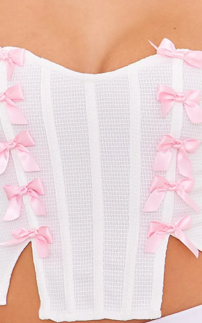 Add a touch of luxe to your outfit of the day with this white contrast bow detail corset top, we’re in love. This top features a white material with contrasting bow detailing and a corset style that will flatter your unreal figure. Wear with a mini skirt, heels and your fave bottoms and simple accessories for a look that is sure to get you noticed.