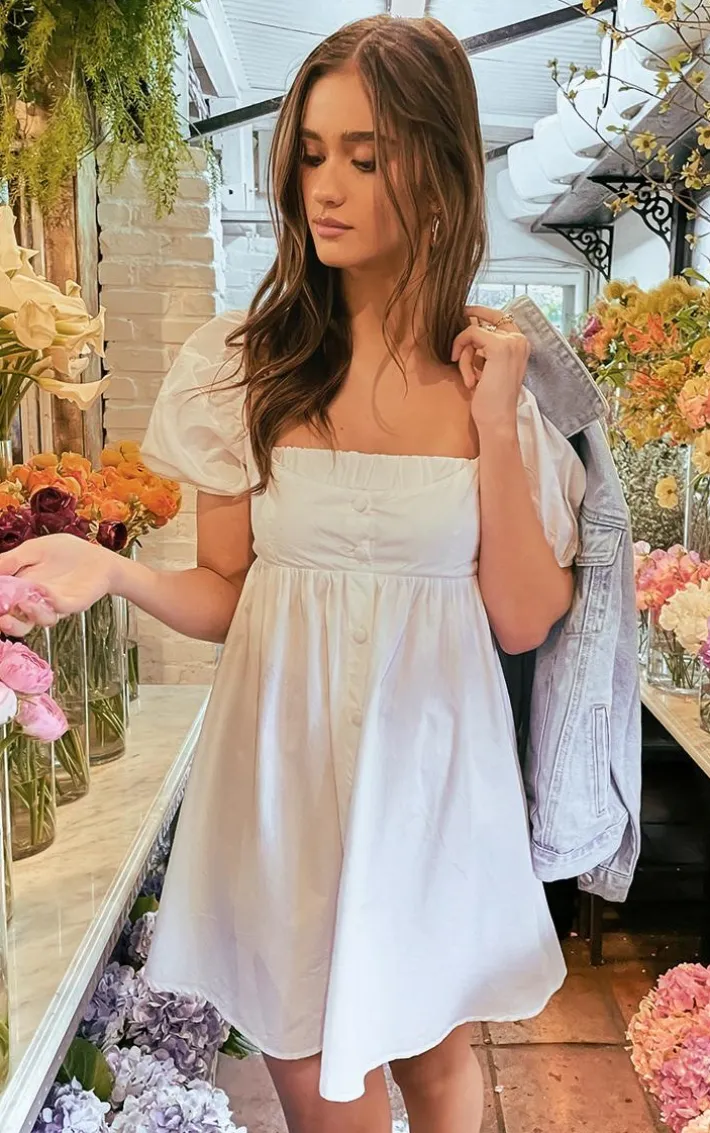 Elevate your look with this white cotton button down smock dress. Brought to you in a white cotton material with a button down fastening, what more could you want? This smock dress is sure to have you setting major trends this season. Team with your fave accessories and some fresh sneakers for a look everyone will be talking about.