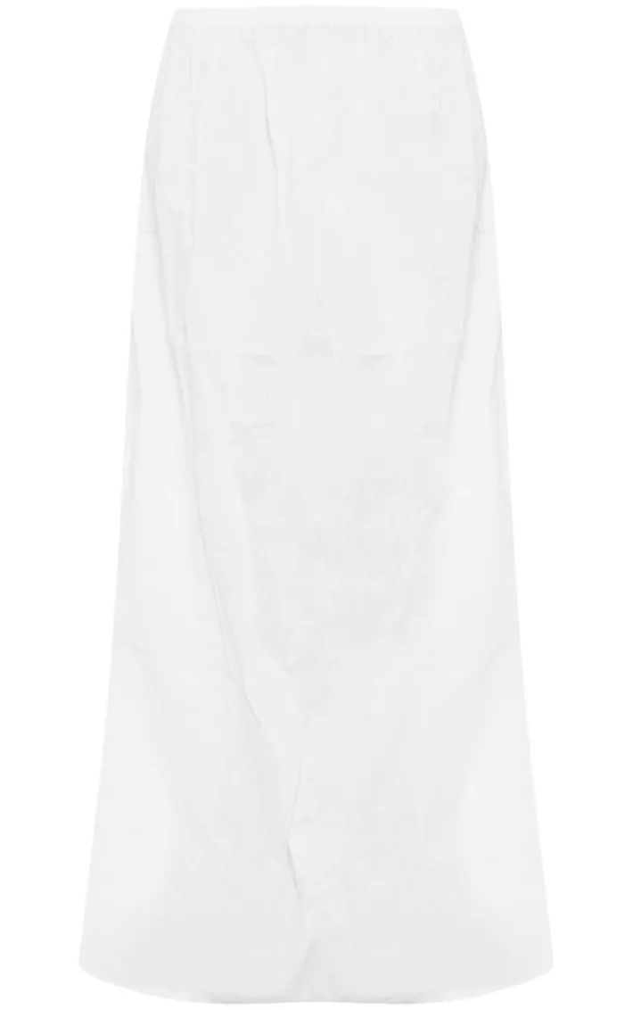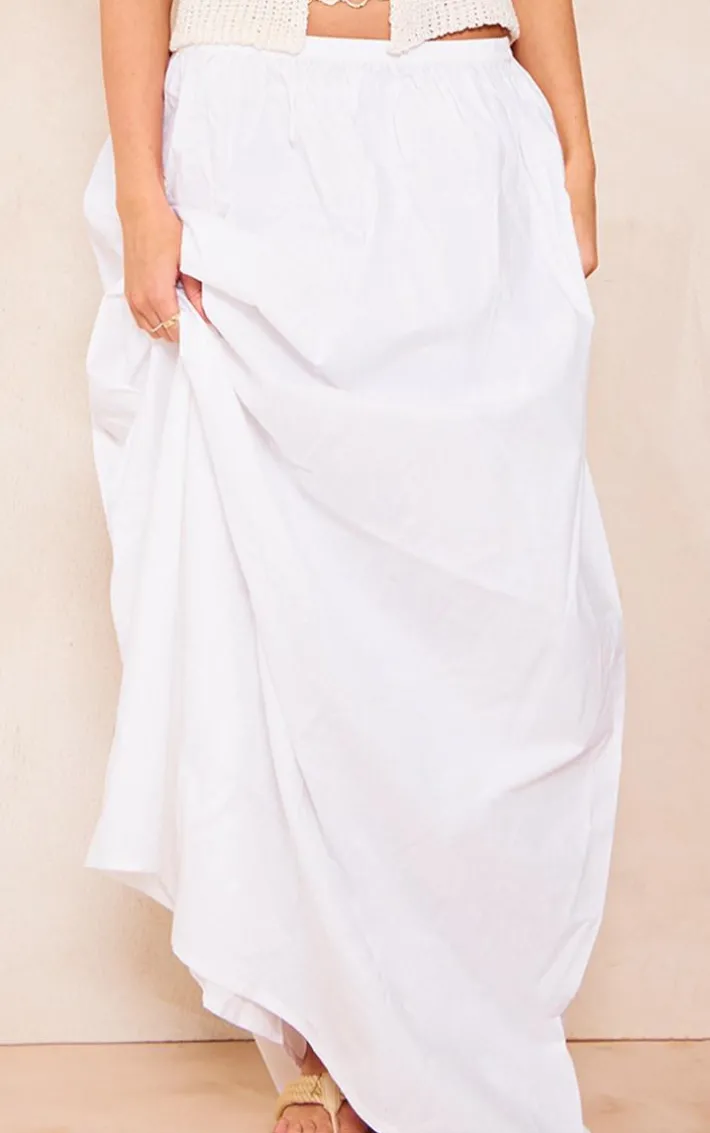 Get ready to nail major trends this season with this white cotton poplin elasticated waist maxi skirt, it’s a definite yes from us whatever your plans. This skirt features a white cotton material with an elasticated waist and a relaxed fit, what more could you want? Style this cotton skirt with a crochet top and your go to accessories for a look that will bring all the luxe vibes.