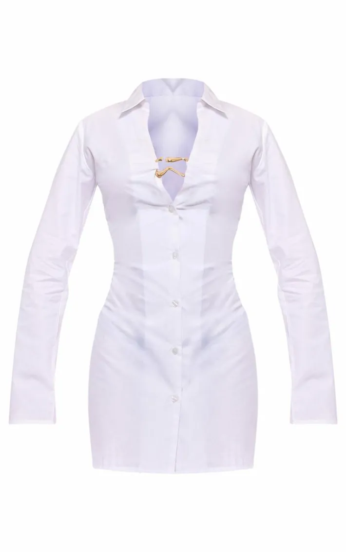 Amp up your style game this season in this white cotton poplin trim detail shirt dress. Brought to you in a white cotton material with a poplin trim detail, this shirt dress is a must-have. Style with black heels and gold accessories for a chic look we can’t get enough of.