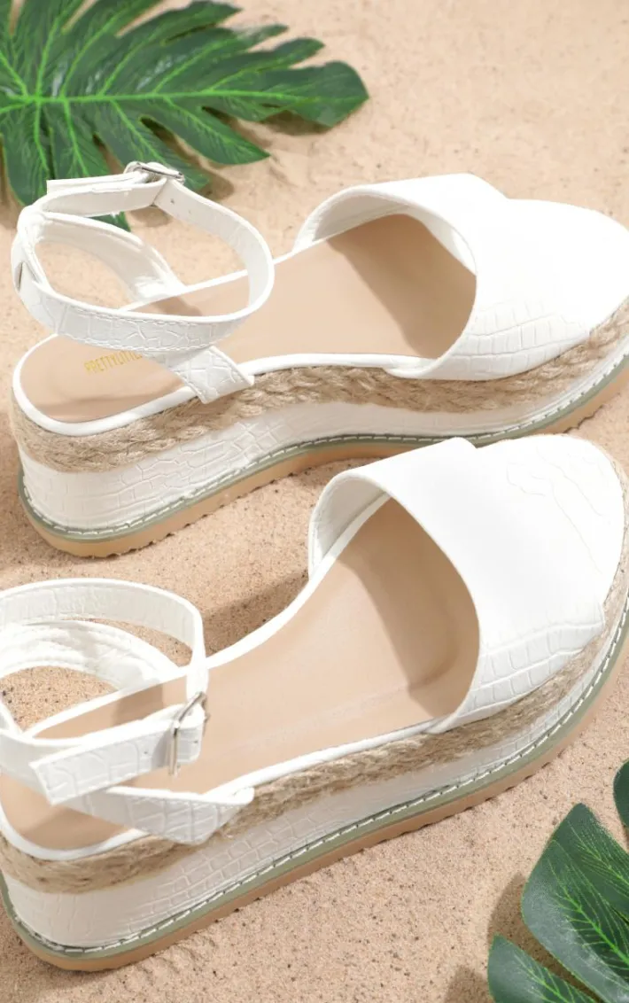 These sandals are sure to be a vacay essential, featuring a white croc fabric and flatform design. We love this for ultimate poolside glam.