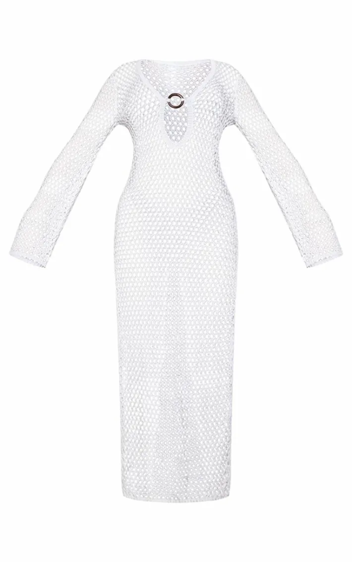 Say hello to your new fave beach coverup with this white crochet O ring maxi beach dress. This beach dress is brought to you in a white crochet material with an O ring design and a maxi length, what’s not to love? Style this beach dress over your fave bikini for a flawless finish.
