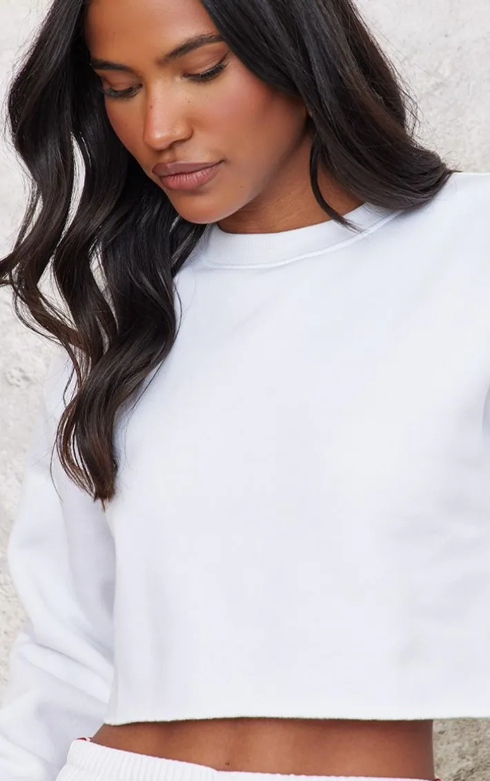 Say hello to your new season staple with this white crop oversized fit Sweatshirt. Brought to you in a white material with a crop length, what more could you want? This Sweatshirt is here to banish any of your what to wear dilemmas doll. Its oversized fit will have you feeling comfy all season. For a look that will have you being the topic of everyone’s conversation, team with some sweatpants and a pair of sneakers.