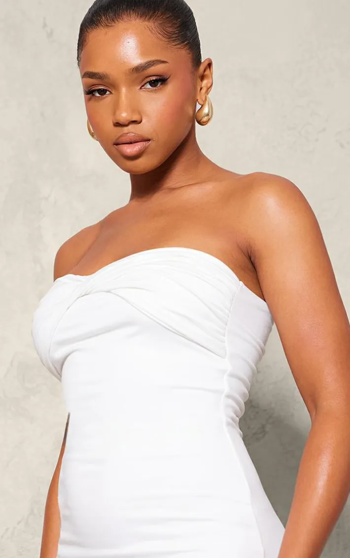 Add some drama into your weekend wardrobe with this white double contour twist bandeau ruched bodycon dress. Brought to you in a white material with a double contour design and a twist bandeau fit, we are seriously obsessed. With its ruched detail, you’re sure to have all eyes on you in this dreamy bodycon dress. To complete the look style with some slip on sandals and gold hoops for a date night look.