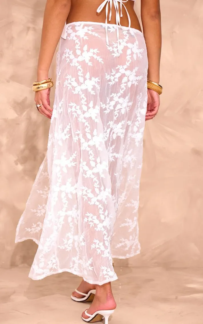 We’re totally in love with this cream embroidered chiffon maxi skirt for your weekend plans. It is made from a cream chiffon material with embroidered detailing and a maxi length, how could you not be obsessed? This gives you endless styling potential and is bound to give your look that extra chic touch. Style seamlessly with a matching hue top, clear heels and gold accessories for a seriously luxe finish.