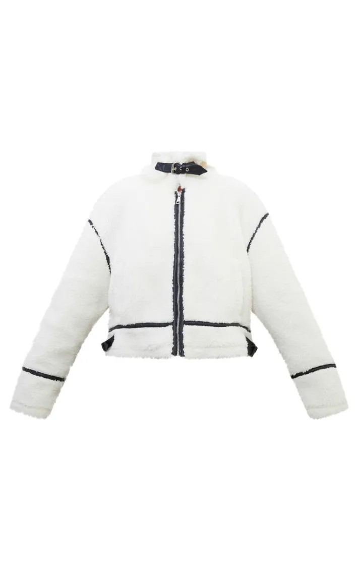 It’s official, we’re obsessed with this white faux leather contrast trim teddy aviator jacket. Brought to you in a white hue faux leather material with a contrast trim teddy detail, this aviator jacket is at the top of our wish list. Style with a pleated skirt, chunky boots and gold accessories for a cosy look we can’t get enough of.
