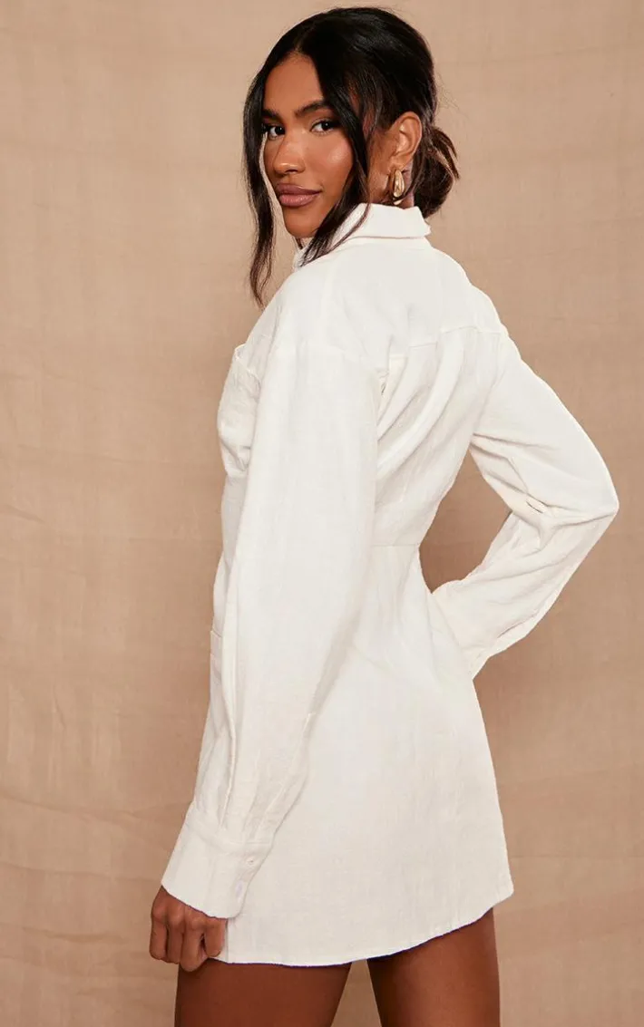 Your new season wardrobe wouldn’t be complete without this white fitted premium linen look shirt dress, it is perfect for dressing up or down. Made using a white premium linen look material with a fitted design and button down fastenings, what more could you want? Pair this fitted dress with heels and some gold hoop earrings for a look we’re loving for your next night.