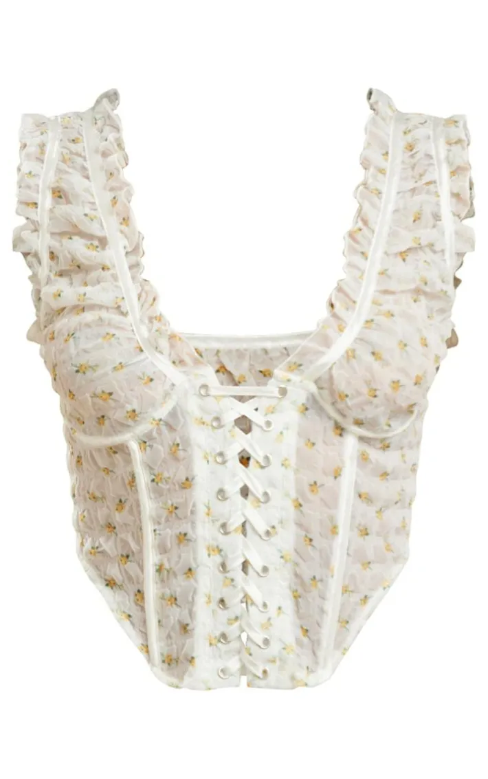 You won’t be able to resist this white floral chiffon boned lace up detail corset for your new season wardrobe doll. With its white floral chiffon material, boned detail and lace-up fastening, you are sure to nail some major trends right now. This corset is perfect for dressing up for your weekend plans or adding a little extra edge to your off-duty days. Style with a cargo mini skirt, western boots and cool accessories for a vibe that won’t go unnoticed.