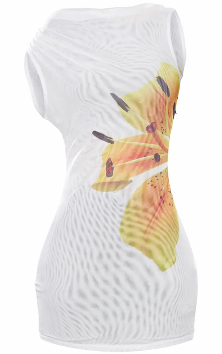 This white floral double layer printed mesh asymmetric bodycon dress is here to solve all of your ‘what to wear’ dilemmas. Brought to you in a white hue mesh material with a double layered design and a dreamy floral print, how can you say no? Style this asymmetric bodycon dress with heels and some glam accessories for a look that is guaranteed to steal all the stares.