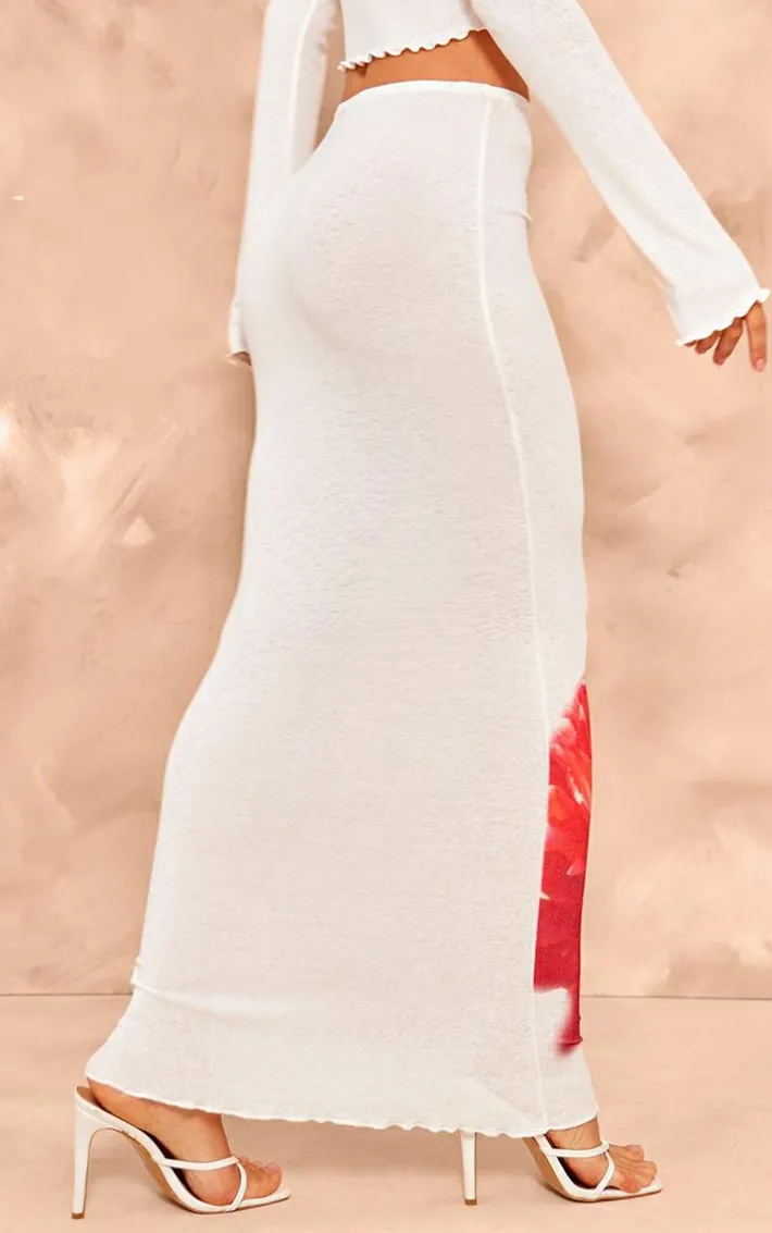 Add some chic into your look with this white floral print maxi skirt. This maxi skirt is brought to you in a white hue with a floral print design and a figure-hugging fit, how could you turn this down? This maxi skirt is here to have all eyes on you. Pair this with the matching crop top, high heels and accessories for a weekend-worthy combo.
