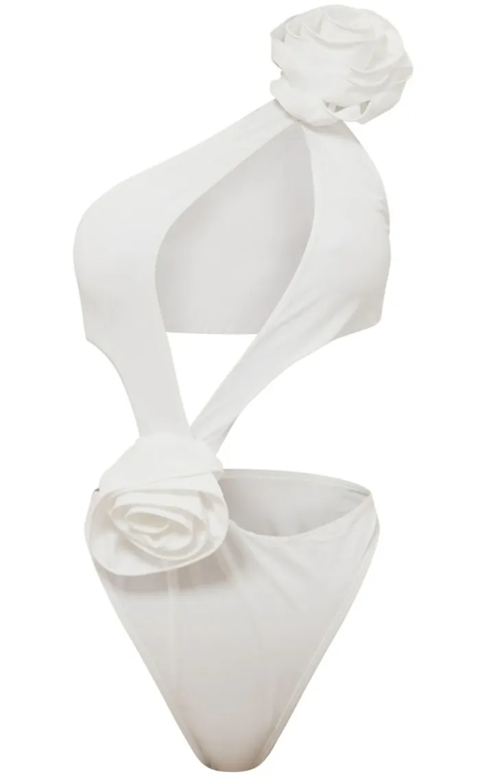 Get ready to have all eyes on your with this white flower detail cut out asymmetric swimsuit. From the poolside to the beach this swimsuit is the statement piece you need. Made from a white material with flower detailing, a cut-out asymmetric design and a figure-flattering fit, how could you say no? Style with your gold accessories and sandals for a vacay look that we can’t get enough of.