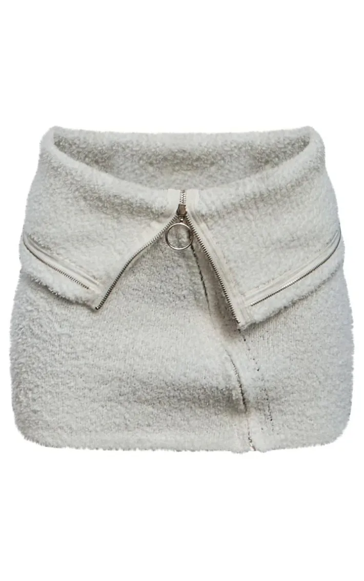 Take your new season wardrobe that extra mile with this white fluffy knit fold over zipped mini skirt, it’s a definite yes from us. Made using a white fluffy knit material with a fold over design and an zip front detail, you’ll be adding this mini skirt straight to your basket. Style it with the matching top, knee high chunky boots and some sunglasses for a chic, off-duty look.