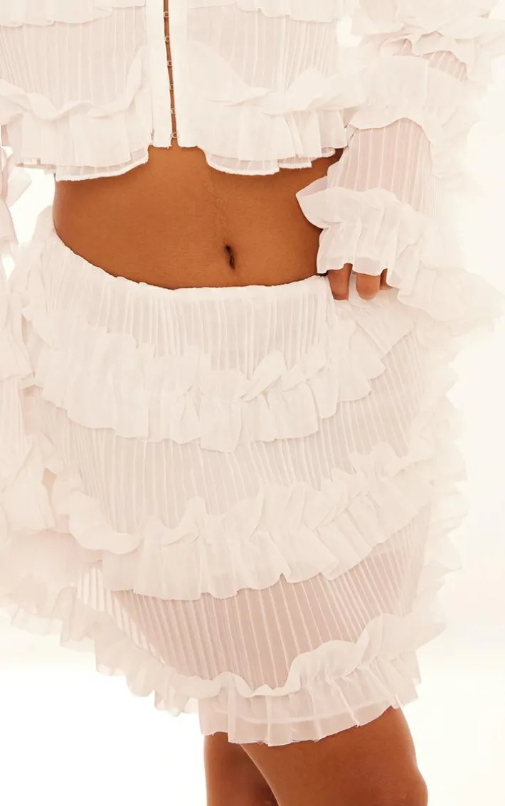 Bring all the luxe vibes to your weekend look with this white frill detail mini skirt. Brought to you in a white hue material with frill detailing for that extra touch of luxe and a mini fit, how can you resist? We are loving this mini skirt styled with the matching top, heels and some glam accessories for a look that is sure to steal all the stares.